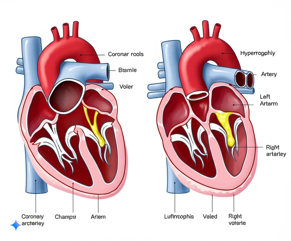 - Coronary Artery Disease: A build-up of plaque in the arteries, reducing blood flow to the heart.